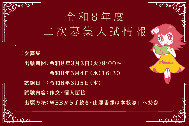 Web出願受付3/3(火)9:00-3/4(水)16:30