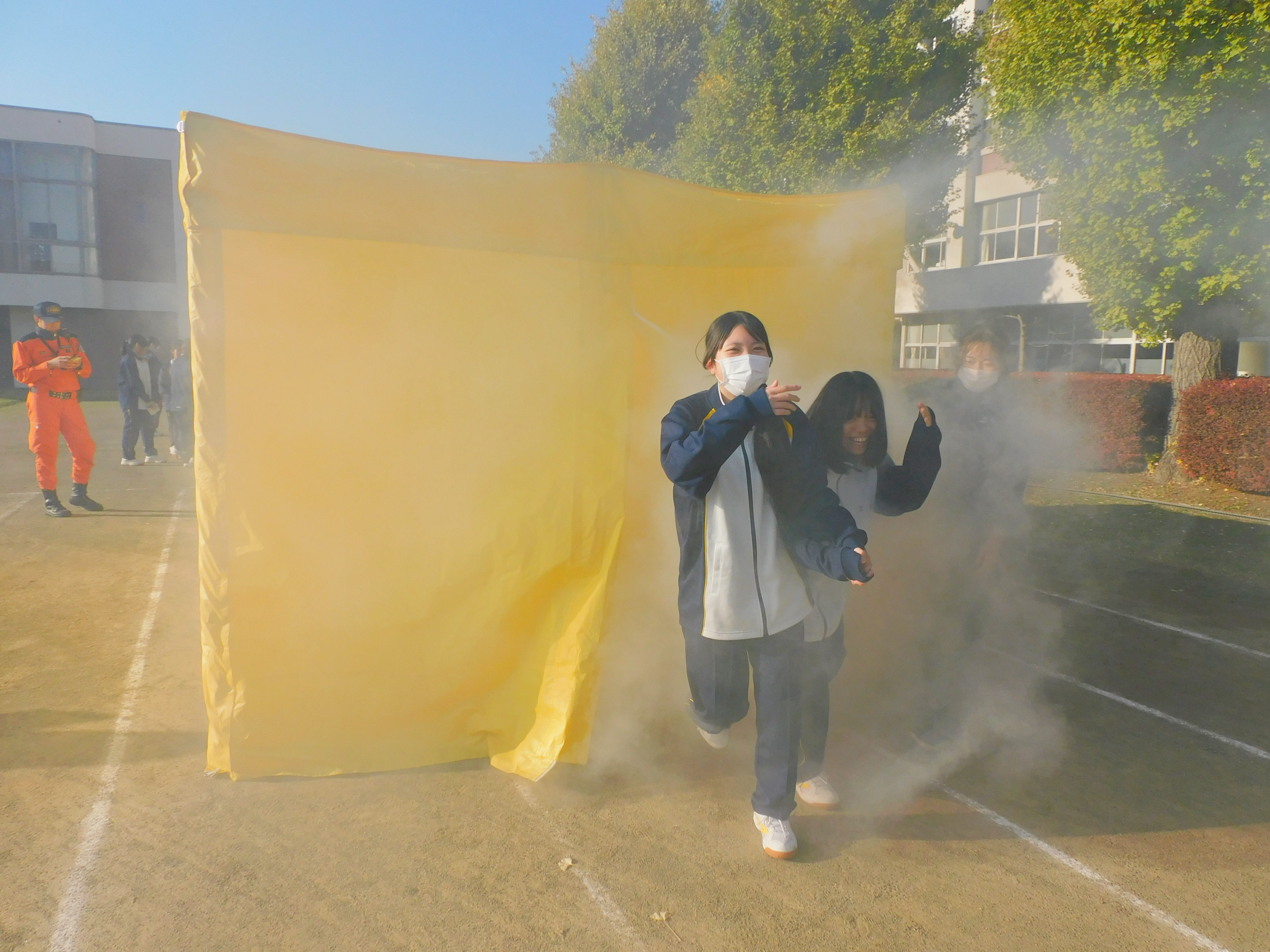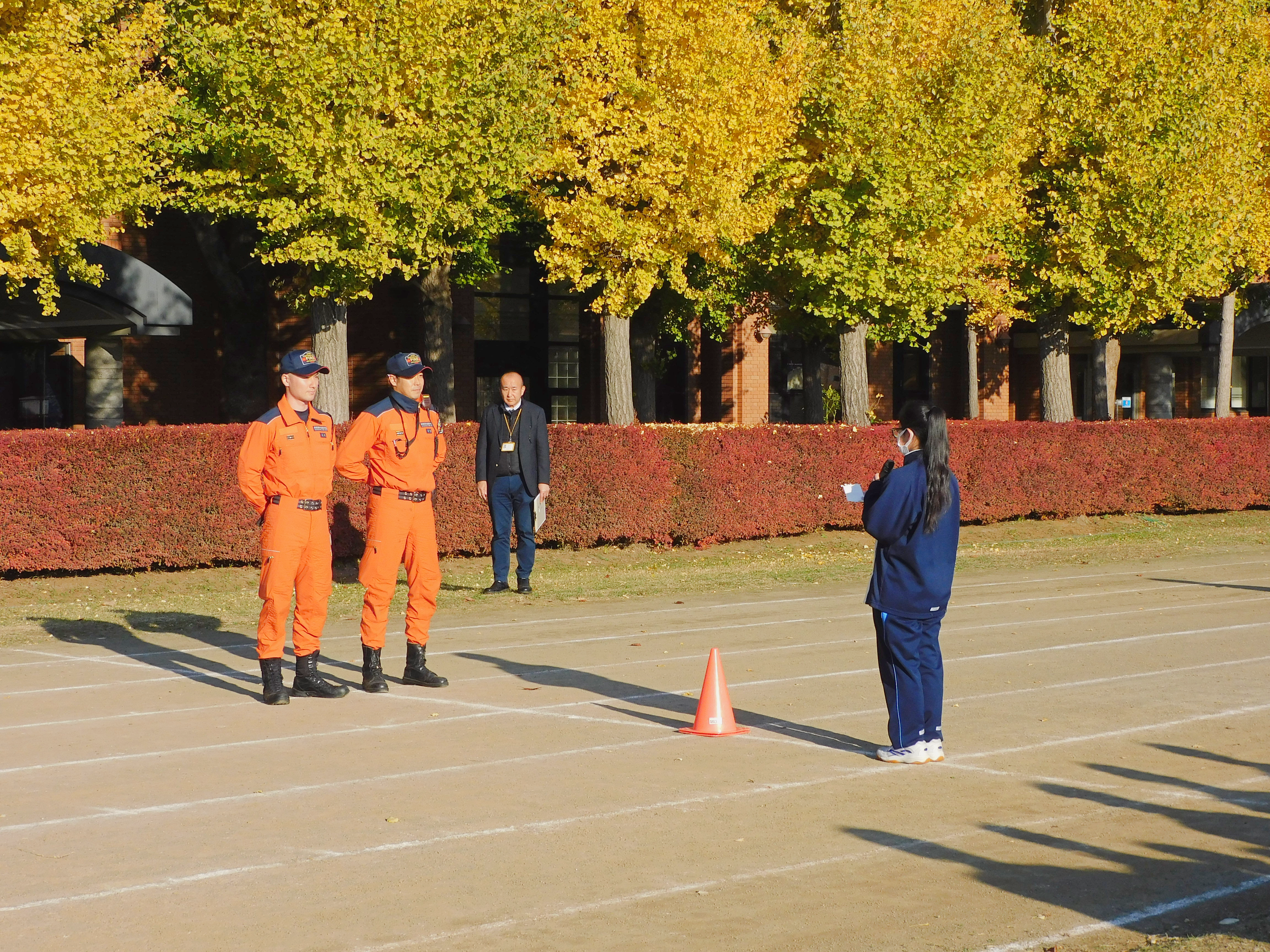 11月19日(水)、四街道消防署の方にお越しいただき、防災訓練を行いました。「地震の影響で火災が発生した」という想定でグラウンドへ避難し、その後は降下訓練や消火器を使った消火練習、煙ハウスを用いた避難の練習も行いました。消火のコツや安全確保の方法など、具体的なアドバイスをいただきながら、災害時の対応を学ぶことができました。