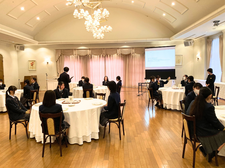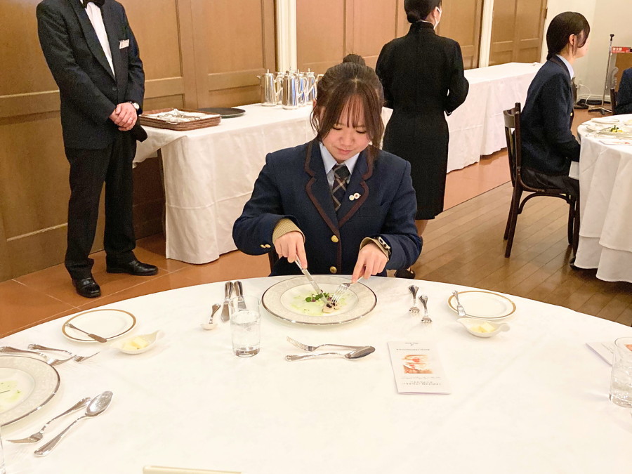 落ち着いた会場の雰囲気の中、講師の方からマナーの基本を学びつつ、食事を楽しみました。