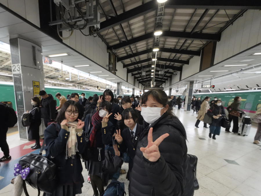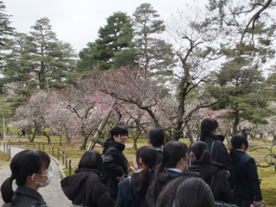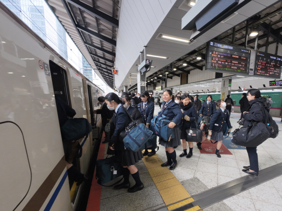 令和8年3月13日(金)第2学年生徒は関西北陸修学旅行に出発しました。早朝東京駅に集合した生徒たちは、お見送りの先生方に元気に挨拶をし、出発しました。金沢の兼六園では庭園の美しさ、歴史の重みを感じ、その存在に圧倒されました。金沢21世紀美術館では、新しいタイプの様々な芸術作品に触れ、私たちも新しい価値観が心の中に芽生えたような気がします。その後、千里浜なぎさドライブウェイでは、砂浜を走るバスの車窓から、全長約8キロメートルの砂浜ドライブを楽しみました。